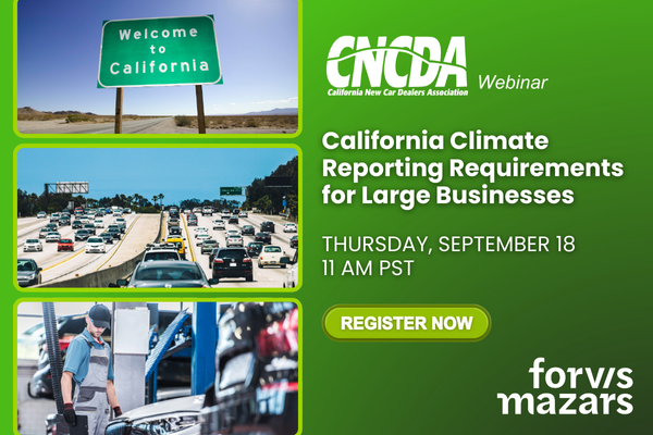 To comply with California’s climate rules, U.S. organizations doing business in the state and with global revenues over $500 million and $1 billion will need to issue a biennial climate-related financial risk report and report annual greenhouse gas emissions data with third party assurance, respectively. Join subject matter specialists from public accounting firm Forvis Mazars who will provide an overview of lessons learned through case studies of recent implementations, the latest regulatory developments, and compliance planning considerations.